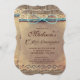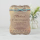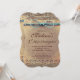 Rustikales Country Vintag Paper und Burlap Print mit aquamarinem Garn-Bogen-Design oben gedruckt. Erste Einladungen zur Heiligen Kommunion.