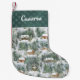 Personalisieren Sie diesen rustikalen Wald Weihnachten Strumpf, mit einem Muster von gemütlichen Ferienhäusern im schneebedeckten Kiefernwald. *Wenn Sie Designhilfe benötigen oder dieses Design auf anderen Produkten wünschen, kontaktieren Sie mich bitte über Zazzle.