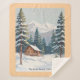 Bleibe warm im rustikalen Landstil, mit diesem attraktiven Bild Decke. Die Decke bildet eine gemütliche Hütte im Grünen mit Schnee, Bergen und immergrünen Bäumen. Personalisieren Sie unten das Bild mit Ihrem eigenen Text, z.B. Ihrem Familiennamen.
