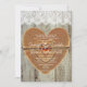 Diese rustikalen Hochzeitseinladungen auf dem Land haben ein Landmotiv-Design von drei Holzherzen, die übereinander gestapelt und mit einem Weinbogen verbunden sind. Es hat auch ein elegantes weißes Spitzen-Design oben. Der Hintergrund der Einladung ist rustikales altes Scheunenholz. Bitte beachten Sie, dass es sich um eine flache gedruckte Einladung handelt. Die Spitzen und der Zwirn sind nur ein bedrucktes Design, es ist nicht wirklich Spitzengewebe. Diese Einladung hat vollen Farbdruck auf beiden Seiten, mit der Rückseite der Hochzeitsankündigung hat die gleiche rustikale Holz Herz-Design. Das Holzholz ist heller und die Holzherzen sind braun. Das ist ein einzigartiger rustikaler Einladungsstil, der nur hier auf Zazzle Hochzeitseinladungen zu finden ist. Rabatt Verkaufspreise bei Bestellung von mehr als 50 Einladungen. Diese rustikalen Einladungen eignen sich hervorragend für Hochzeiten in der Umgebung, für Stallungen und für rustikale Hochzeiten.