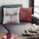 Stilvoll und festlich, ist dieses Kissen der perfekte Weg, um Ihrer Wohngestaltung einen kleinen Flair mit Tabby-Chic hinzuzufügen. Das Design ist mit einem Rentierschädel mit roter und grüner Garage und dem Text "Frohe Weihnachten" versehen, der geändert werden kann. Die Rückseite des Kissens weist ein rotes Flanell-kariertes Muster auf. Gute Ferien!