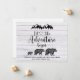 Rustikale Wanderbärenfamilie ließ das Abenteuer beginnt Schwangerschaftsankündigung, auf einem Holzboden. Kalligrafie mit Herz.