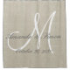 Rustikales Leinenschauen und weißes Monogramm-Hoch Duschvorhang