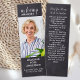 Rustikales Chalkboard Beileid Beerdigung Gebet Lesezeichen. Dieses einfache Gedenkgedicht Lesezeichen zeichnet sich durch ein rustikales Chalkboard-Design aus. Front "In Loving Memory" Personalisieren Sie diese Gedenkkarte für das Beerdigungsgebet Lesezeichen mit Ihren Lieben Foto, Name & Daten und Stimmung. Back ~ 'May You Always Walk In Sunshine' Gedicht, das personalisiert sein kann, bitte ausgreifen, wenn Sie ein Design mit einem anderen Gedicht wollen. Diese Gedenkbetkarte wird ein wertvoller Pfeiler für Beerdigungsdienste, Bestattungfavoriten und die Feier von Lebensgeschenken sein. COPYRIGHT © 2020 Judy Burrows, Black Dog Art - Alle Rechte vorbehalten. Rustikales Lesezeichen zur Beerdigung der Beerenkarte