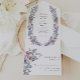 Elegante rustikale Lilac All-In-One-Einladung. Vereinfachen Sie Ihre Hochzeitsarbeit ohne Kompromisse bei Eleganz mit dieser atemberaubenden All-in-One-Einladung zum Siegel. Diese Einladung verbindet Romantik und Raffinesse mit einem atemberaubenden, handbemalten Kranz von Lilakfarben in weichem Lavendel, lila und blau verwoben mit üppiger Vegetation. Das einfach zu bedienende Format enthält eine abreißende RSVP-Karte, die den Komfort erhöht, während das nahtlose Design ein poliertes und koordiniertes Aussehen gewährleistet. Vollständig anpassbar, können Sie die Formulierung personalisieren, die Stile und Größen des Schriftartes anpassen und den Hintergrund ändern, um eine perfekte Übereinstimmung für Ihr Hochzeitstil zu schaffen. Erleben Sie einen bleibenden ersten Eindruck mit einer Einladung, die Schönheit und Praxisnähe verbindet.
