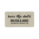 Rustikales Leinenskript Hochzeit speichern Sie das Date Address Label. Design von Elke Clarke© für MonogramGallery, gedruckt von Zazzle. Versenden Sie Ihre Datumskarten an Ihre Freunde und Familie mit diesem wunderschönen, einfachen Etikett mit den Worten "Save the Date", geschrieben in einer weißen Hand und geschrieben Typografie Skript Text-Overlay. Foto-Effekt auf beige Leinenhintergrund gedruckt. Andere Farben sind verfügbar.