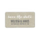 Beige Rustikale Leinenschrift Hochzeit Speichern Sie die Datums-Adresse-Etikett. Design von Elke Clarke© für MonogramGallery, gedruckt von Zazzle. Versenden Sie Ihre Datumskarten an Ihre Freunde und Familie mit diesem wunderschönen, einfachen Etikett mit den Worten "Save the Date", geschrieben in einer weißen Hand und geschrieben Typografie Skript Text-Overlay. Foto-Effekt auf beige Leinenhintergrund gedruckt. Andere Farben sind verfügbar.