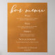 Dieses rustikale Hochzeitsmenü aus Gold zeichnet sich durch eine elegante, weiße Typografie aus, die auf einem dezenten Erdtonposter überlagert ist. Im Herbst folgen die Trends für eine böhmische Hochzeit in einfachen, hellen Orange- und Brauntönen. Füllen Sie den Druck mit Ihrem minimalistischen Skript über die Farbe verblassen auf dieser Getränkeliste.