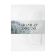 Elemente: Aquarellmalerei des rustikalen Bergsees im Winter; elegante Serifen und serifenlose Schriftart. Farben: Blau, Grün, Grau, Weiß, Offweiß. Themen: Berge, Seen, Hochzeit im Freien, Winterhochzeit, elegant, rustikal, impressionistisch, Aquarell, schneebedeckte Berge. Sammlung: Rustikale Hochzeitssammlung über den Bergsee. Art des Produkts: Bauchband