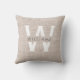 Minimales und modernes, einfaches dennoch modisches kundenspezifisches Familienmonogrammkissen in einem schicken rustikalen Leinenblick. Personifizieren Sie mit Ihrer eigenen Initiale und Familiennamen.
