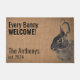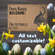 Diese einfache, minimale und rustikale, moderne schwarze Hasen Willkommensmat ist eine einfache Möglichkeit, jeden zu Ihrem Zuhause oder Geschäft zu begrüßen! Die Wörter "Jeder sonnige Empfang", Ihr Nachname oder Ihr Firmenname und das feststehende Datum sind alle nach Ihren Wünschen anpassbar. Der Teppich ist perfekt für den Frühling geeignet und bietet Gästen und Kunden in ihrem Eingangsbereich einen freundlichen Empfang mit seinem einzigartigen und charmanten Design. **Wichtiger Hinweis: Diese Matte ist für den Eintritt in eine Eingangshalle oder auf einer überdachten Veranda oder einem überdachten Innenhof bestimmt. Für eine stabilere Außenmatte finden Sie die "coir" Matte auch in meinem Shop: https://www.zazzle.com/rustic_modern_black_bunny_rabbit_outdoor_mat-256325452800019382 . Diese Briefmarke entstand aus meiner Naturfotografie eines Hasen, der im letzten Jahr in meinem Hinterhof häufig war! Wir waren froh, ihn in unserem Garten begrüßen zu dürfen. Foto von Amanda Renee, CtrlZ Digital Designs 2023