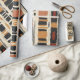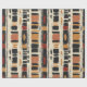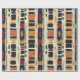 Erdiges geometrisches Muster-Wrap-Papier, inspiriert von tribalen Mudcloth-Textilien, mit handgemalten Rechtecken, Diamanten und Dreiecken in Holzkohleschwarz und Terrakotta auf einem texturierten beigen Hintergrund. Ein warmes Boho-Design, ideal für Liebhaber rustikaler Dekoration, Anhänger des Artisan-Stils und alle, die sich von erdigen geometrischen Ästhetiken angezogen fühlen.