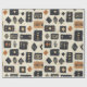 Erdiges geometrisches Muster-Wrap-Papier, inspiriert von tribalen Mudcloth-Textilien, mit handgemalten Rechtecken, Diamanten und Dreiecken in Holzkohleschwarz und Terrakotta auf einem texturierten beigen Hintergrund. Ein warmes Boho-Design, ideal für Liebhaber rustikaler Dekoration, Anhänger des Artisan-Stils und alle, die sich von erdigen geometrischen Ästhetiken angezogen fühlen.
