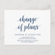 Dies ist das moderne minimale saubere Design Thema, in Navy Blue Schriftart, Hochzeitsfeier Einladung Rescheduled (verschoben / verschoben) Postcard (Wechsel der Pläne) . Es ist der perfekte und elegante Weg, um den Zeitplan Ankündigung für Ihre Freunde und Familie zu machen.