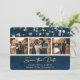 Personalisiertes marineblaues rustikales Hochzeitsfest-Foto speichern Sie die Datumskarten. Dieses marineblaue Foto ist leicht zu personalisieren, Save the Date mit Ihren Bildern und Hochzeitsdetails inklusive einer Hochzeitswebsite.