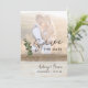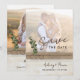 Rustikale neutrale "Imitate binden Burlap Wood Eukalyptus Look" Weiße Boho Foto Save the Date Hochzeit Einladung. **Hinweis: Bei der Erstellung dieses Artikels werden kein tatsächlicher Zwirn, Holz, Eukalyptus oder Burlap verwendet.