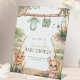 Herzlich willkommen zu Ihrem Fest mit unserem Rustic Gender Neutral Fisherman Baby Shower Pedestal Sign! Dieses bezaubernde Zeichen vereint wunderbar das Wesen eines kleinen Fischermotivs mit einem reizvollen Aquarellbild mit Waldtieren. Die herzliche Phrase "Wir sind begeistert" fügt eine spielerische Touch hinzu, während die blütenrosa Blumenakzente eine einladende Atmosphäre für eine geschlechtsneutrale Babydusche schaffen. Dieses Schild, das sich perfekt für eine Waldveranstaltung oder ein ländliches Ereignis eignet, besticht durch seinen rustikalen Charme und sorgt dafür, dass sich Ihre Gäste auf dem Mond wohl fühlen. Die elegante Typografie und der Schriftart mit Schriftzeichen machen das Schild zu einem auffälligen Dekor, das jedes Baby-Duschambiente ergänzt. Schauen Sie sich dieses Schild am Eingang oder an den Geschenktischen an, um Ihre Gäste zu führen und die Ankunft Ihres Kleinen im Stil zu feiern. Machen Sie Ihre Babydusche unvergesslich mit diesem einzigartigen und niedlichen Zeichen, das die Freude an der Begrüßung einer neuen Ergänzung Ihrer Familie erweckt!