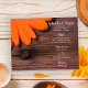 Das charmante Rustic Orange Daisy Country Wedding Menu mit den Details des Essens, das Sie auf Ihrem Farm Probe Dinner, Brautparty Mittag-oder Ehe Empfang Stall Party, indem Sie den Salat oder erste Gänge, Vorspeise oder zweite Gänge und Dessert oder dritten Gang. Personalisieren Sie es mit den Namen der Braut und des Bräutigams, dem Ort und dem Veranstaltungsdatum. Dieses lässige und dennoch elegante Hochzeitsmenü bietet ein malerisches Blumenfoto einer orangefarbenen, gerberblütigen Blume mit braunem, verwittertem Braunholz und einem rostigen Nagelkopf.