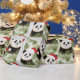 Rustikales Panda Winter Ferien Muster Packpapier. Niedlicher weißer Panda mit Weihnachtsmannmütze und Weihnachtsbaummuster.