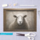 Rustikales Landhaus Primitive Ram oder Schafe dekoupage Gewebe Primitive Malerei mit einem Ram in einem Rahmen, im Stil der primitivistischen Kunst, Illustration Portrait, und Bauernhaus.