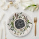 Rustikales Holz Scheiben Brautparty Design. Mit schönem Aquarell, weißen Blumen, Holzschnitt und Schrifthandeschreiben. Dieses moderne Design ist sicher, den Stil für Ihr bevorstehendes Party Set.