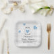 Rustikales Holz Maurer Junge Babydusche Party Papier Teller. Maßgeschneidertes Design mit weißem Holzkornpaneel und kleinen verblassten Herzen in hellpastellblau. Elegante Schrift Typografie mit niedlichen Lieben-Symbolen und rustikalem Mason-Glas zeichnend. Trendy Country chic Stil Designs für Feiern mit neugeborenem Kind. Teil einer passenden Kollektion mit wunderschönen Umschlägen und sehr hübschen Dekorationen.
