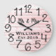 Ein schönes, einzigartiges, einzigartiges personalisiertes Design, das einen schwarzen personalisierten Namen in einem Skript-Schriftart-Overlay-Design und den Nachnamen und das letzte Jahr in einem fett geschriebenen Skript mit einem grauen, bedrückten Holzhintergrund. Personalisieren Sie diese Uhr durch Hinzufügen Ihrer persönlichen Daten. Macht eine große Hochzeit, Jahrestag oder Hauswärme Geschenk. Klicken Sie auf "Personalisieren Sie diese Vorlage", um die Namen, Schriftart und Farben zu ändern, um eine einzigartige von einer Art Design zu erstellen. Ein elegantes, rustikales Accessoire für Ihr Wohnzimmer, Schlafzimmer oder Familienzimmer. Wenn Sie Hilfe bei der Anpassung benötigen, schicken Sie mir bitte eine E-Mail an ybnormalone @gmail.com. Danke, dass Sie von www.zazzle.com/Personal_Creations angehalten haben! ©Karen Hall für Personal_Kreationen bei Zazzle.