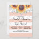 Diese Herbstsonnenblume Braun-Dusche lädt mit rustikalen orangefarbenen Streifen mit blühenden Wasserfarben vorn und gemustert auf der Rückseite ein. Sonnenblumen sind dieses Jahr für ein Brautparty mit Herbstthemen beliebt.