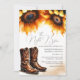 Diese Probe-Dinner-Einladungen im Land enthalten die Worte "The Night Before" in eleganter Schriftzeichen-Kalligrafie. Die Einladungskarte eignet sich perfekt für ein rustikales Event. Das Design besticht durch eine oberflächliche Oberfläche mit Aquarellsonnenblumen und Cowboystiefeln in goldgelben und braunen Tönen. Die Karte kehrt zu einem kostenlosen Sonnenblumenmotiv zurück. Dieses Hochzeitsgeschenk eignet sich ideal für ein Abendessen in der Probe im August, September, Oktober und November. Weitere Designs finden Sie unter www.zazzle.com/vginvites