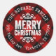 Erschwingliche, individuell bedruckte Rundaufkleber mit Rücksendeadresse personalisiert mit Ihrem Familiennamen und Ihrer Rücksendeadresse. Dieses rustikale, moderne Urlaubsdesign besticht durch eine beängstigende MERRY CHRISTMAS Schrift auf einem karierten Hintergrund aus rotem und schwarzem Büffel-Karo. Verwenden Sie die Designtools, um eine beliebige Hintergrundfarbe auszuwählen und Schriftart und Farben zu bearbeiten, um Ihre eigenen Rücksendeadressen-Aufkleber zu gestalten.