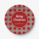 Rustikales Red Checked Buffalo Kariert Frohe Weihn Pappteller