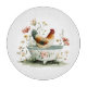 Diese skurrile Aquarellpaarung besteht aus einem Hühnchen, eingebettet in eine Blumenschüssel, und einem Regalhahn, der auf einem weißen Zaun befestigt ist und von lebhaften Blüten umgeben ist. Der rote Kamm und die gemotzten Federn des Hühners kontrastieren spielerisch mit sanften Gängen und Wildblumen, während der feurige Absturz des Hahnenmeisters und der grüne Schwanz inmitten von Fuchshandschuhen und warmen Blüten Aufmerksamkeit erregt. Gemeinsam verschmelzen sie rustikalen Charme und Geschichtenbuch-Flair in einer gemütlichen, naturküss gestalteten Komposition.