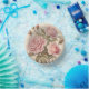 Sehr malerische Darstellung eines kleinen Bouquets aus rosa Rosen und Knospen auf einem beängstigenden Pergament-Hintergrund.