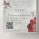 Rustikales Rosa und blaue Peongs zeigen grünen QR- All In One Einladung
