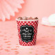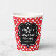 Die Hochzeitspapier-Party-Becher sind mit einem karierten, roten und weißen Gingham- gemusterten Hintergrund mit Schwarz-Weiß-Grill-Design, GRILLEN-Gabel und Spatula-Grill-Utensilien und Herzakzent ausgestattet. Personalisieren Sie den benutzerdefinierten Text mit den Monogramm-Initialen des Paares, den Namen, dem Wortlaut der DO-GRILLEN und dem Datum. Ideal für eine lässige Hochzeitsfeier im Hinterhof.