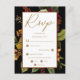 Ätherische Blumensträuße mit dunkelroten, rostigen Orangen-, Gelb- und Goldtönen und üppiger Vegetation verleihen diesem düsteren botanischen Hochzeitskonzept "UAWG" ein Gefühl von tiefer, moderner rustikaler Eleganz, das Ihre Empfänger beeindrucken wird. Erhältlich in verschiedenen Farbkombinationen. Fügen Sie einfach Ihr Antwortdatum hinzu. Hier auf schwarzem Hintergrund dargestellt. Composite Design von Holiday Hearts Designs (Rechte vorbehalten).