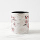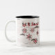 Rustikales Red Buffalo Karierte Schneeflocken auf Birch Zwei-Tone-Kaffee-Tasse. Der weiße Birkenhintergrund erinnert mich an meinen Großväterhof zu Weihnachten. Die karierten Rot-Büffel mit "Let it Snow" sehen zusammen fantastisch aus, wie Sie im Hinterhof Ihrer Großeltern sitzen.