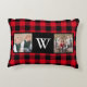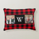 Auf diesem rustikalen Akzent-Kissen mit rotem und schwarzem Büffel kariert kreieren Sie mit Ihren Lieblingsfamilien Ihren eigenen besonderen Sake. Zwei quadratische Fotos sind durch einen schwarzen Rand gerahmt, und das mittlere Quadrat ist schwarz, mit einem weißen Monogramm, das für die Personalisierung initialisiert wurde. Ersetzen Sie die Fotos der Mustervorlage durch Ihre eigenen. Ideal für Familien oder andere Fotos. Macht ein wunderbares Geschenk für Familie und Freunde. Fotografie © Storytree Studios, Stanford, CA