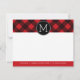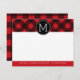 Rustikales rotes Buffalo Kariertes Muster Monogram Mitteilungskarte