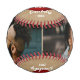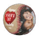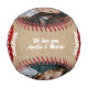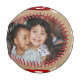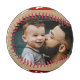 Rustikales Rotes Herz glückliche Vatertag 2 Foto Collage Baseball. Moderner personalisierter Baseball mit 2 Fotos, modernem und trendigem Typografie Sprichwort Happy Vatertag Daddy, schönes rotes Herz, Namen und Jahr auf einem rustikalen beigen Hintergrund. Fügen Sie Ihre Namen, 2 Fotos und das Jahr und ein schönes Geschenk für einen Vater, der Sport Liebe.
