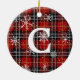 Rustikales Rotes Schwarzes Kariertes Schneeflocken Keramik Ornament