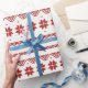 Fest rustikales rot-weißes nordisches Urlaubskehrpapier. Rustikales Design mit nordischen Pullover-Muster mit Blume und trendiger Linienkunst.