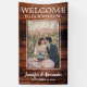 Rustikales Scheunenholz heißt Sie herzlich willkommen auf unserem Banner für Hochzeiten Foto. Entwerfen Sie Ihr persönliches und einzigartiges Hochzeitsbanner. Sie können Ihr eigenes Foto hinzufügen, Text und Namen hinzufügen.