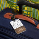Passen Sie diese rustikale, schicke, moderne Gepäckmarke mit Ihren Initialen an. Das Design weist ein modernes Schwarz-Weiß-Muster auf, das oben mit dunklem Holzboden auf der Unterseite versehen ist.