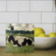 Fügen Sie Ihrem Bauernhof, Ihrer Zuhause oder Hütte rustikalen Charme mit dieser hübschen Kuh und Windmühle Vintage holländische Keramik Fliesen. Eine Holsteinkuh mit ihren verräterischen Schwarz-Weiß-Flecken liegt in einem hübschen, grünen Feld, unter blühenden weißen Wolken. Eine reizende Touch für Ihren Küchentisch oder Backsplash, oder anderen gekachelten Raum. Ideal für das moderne Bauernhaus oder traditionellere Molkereihofshäuser. Auch macht ein tolles Trivet.