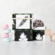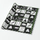 Rustikales Verpackungspapier, das niedliche Wildnisabenteuerthemen der Lagerfeuer, der Geweihe, der Wölfe, der Pfeile, der Federn und mehr kennzeichnet. Der Hintergrund ist der karierte Karo des schwarzen Büffels, aber die grüne Farbe kann geändert werden.