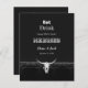 Die rustikale Schwarz-Weiß-Druckkugel mit dem Bull-Schädel. Country Western Cowboy essen trinken verheiratet Spaß Design Hochzeitsankündigung. Nutzen Sie einen kleinen Spaß mit diesen niedlichen, lustigen Einladungen im Bauernstil. Essen, trinken, weil wir Verheiratet werden können personalisiert sein. Trendy, alter wilder Westen Vintager antiker Stil. Cooles Nutztier. Passen Sie Skripte und Typografie an. Bildrecht Marg Seregelyi Fotografie.