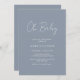 Moderne dustig blaue Babydusche mit einem einfachen Design mit "Oh Baby" in rustikaler Schriftzeichen. Diese elegante Einladung mit minimalistischer Gestaltung ist perfekt für eine Baby-Dusche.