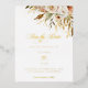 Die Romantik einer Herbsthochzeit wird in diesem eleganten Design mit Aquarellfarben und Grün in warmen Herbstfarben von Terrakotta, Elfenbein, Rost, Kastanien, staubblau und Salbei grün mit Touchs von goldenen Folie Glitzern eingefangen. Dieses Design bietet auch einzigartige Textgrafiken in einem benutzerdefinierten Schriftart für Kalligrafien mit Farbvarianten, die mit dem Design-Editor-Tool angepasst werden können, sowie realer Goldfolientext.