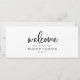 Dieses rustikale Skript hängt Sitzkarte Willkommenskopf ist perfekt für eine Hochzeit auf dem Land. Das schlichte und moderne Schwarz-Weiß-Design besticht durch eine einzigartige handgeschriebene Kalligraphie mit zeitgenössischem minimalistischem Boho-Stil. Anpassbar in jeder Farbe. Behalt das Design minimal und simpel, wie es ist, oder personalisiere es durch Hinzufügen von eigenen Grafiken und Kunstwerken. Die Karte druckt auf der Vorder- und Rückseite (beidseitig). Bitte Karo der Auflistung für die koordinierenden Tischnummer-Kartenkarten.